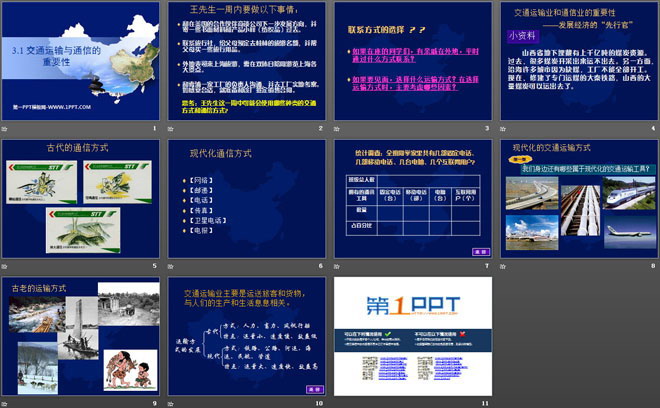 关键词:上海教育版七年级下册地理PPT课件免费下载,交通运输与通信的重要性PPT下载,.PPT格式;