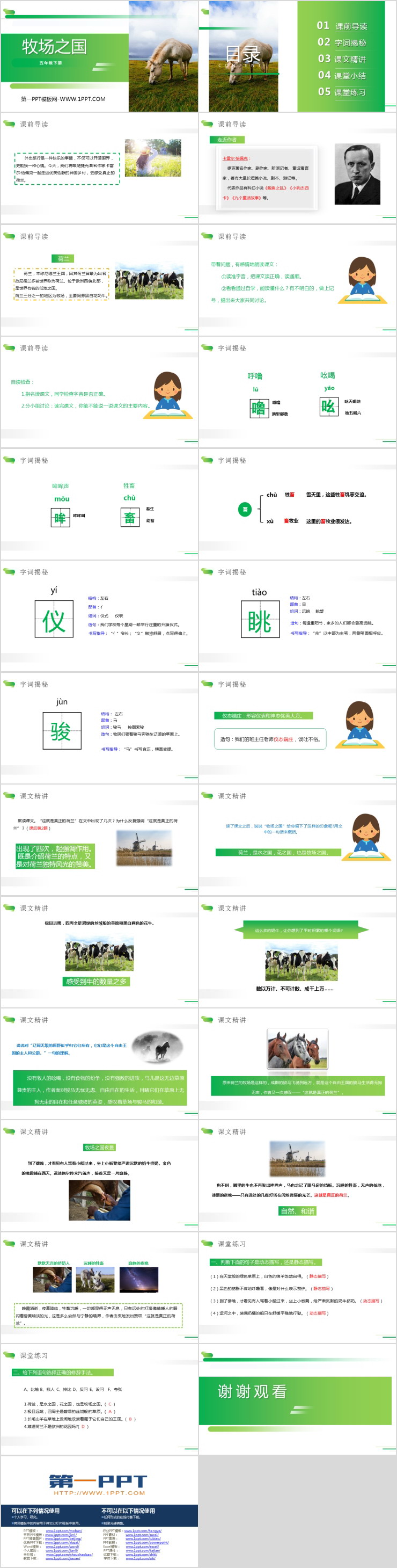 《牧场之国》PPT课件包含课前导读、字词揭秘、课文精讲、课堂小结、课堂练习等内容。