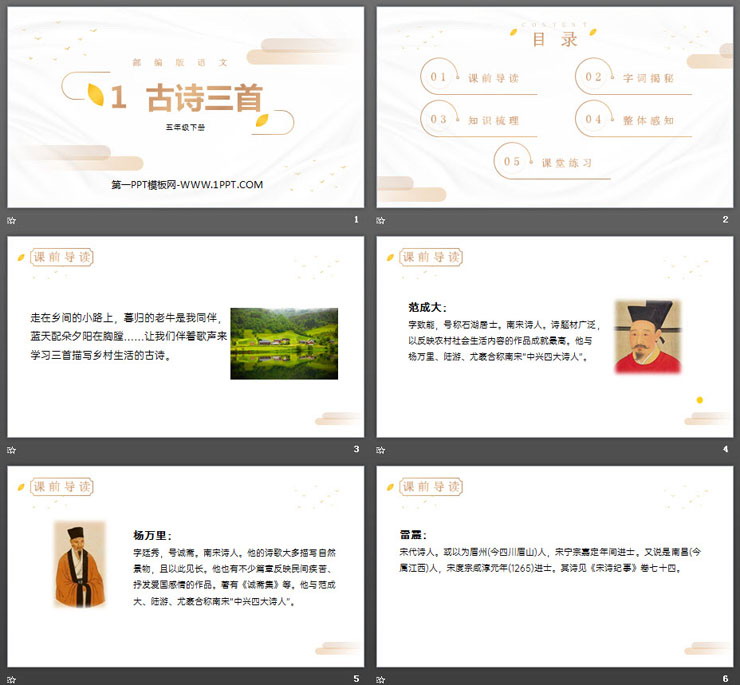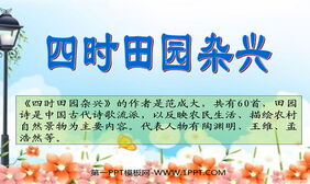 关键词:古诗三首PPT课件免费下载,四时田园杂兴PPT下载,稚子弄冰PPT下载,村晚PPT下载,.PPT格式;