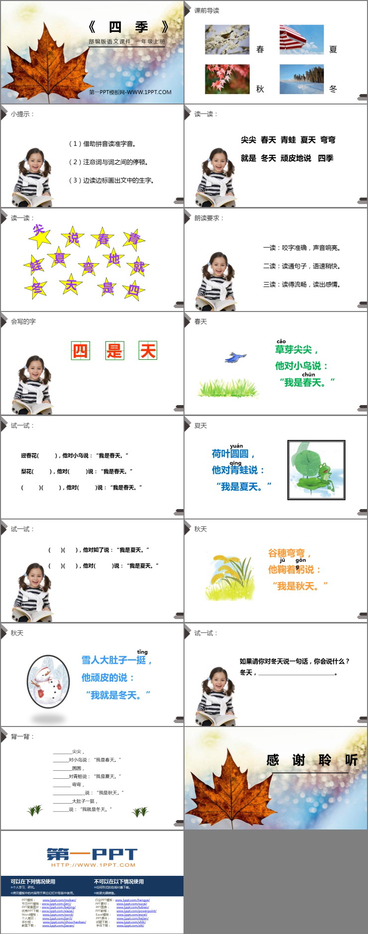 部编版语文一年级上册《四季》PPT课件,共17页。