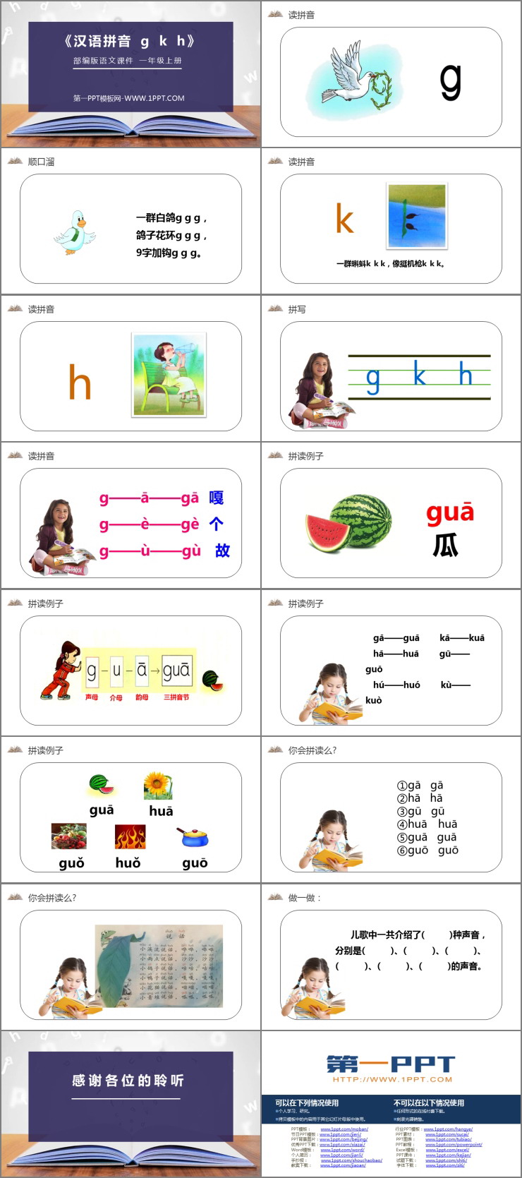《gkh》PPT课件包含读拼音、拼读例子、做一做等内容。