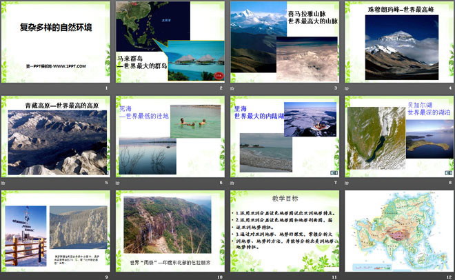 关键词:商务星球版七年级下册地理PPT课件免费下载,复杂多样的自然环境PPT下载,.PPT格式;