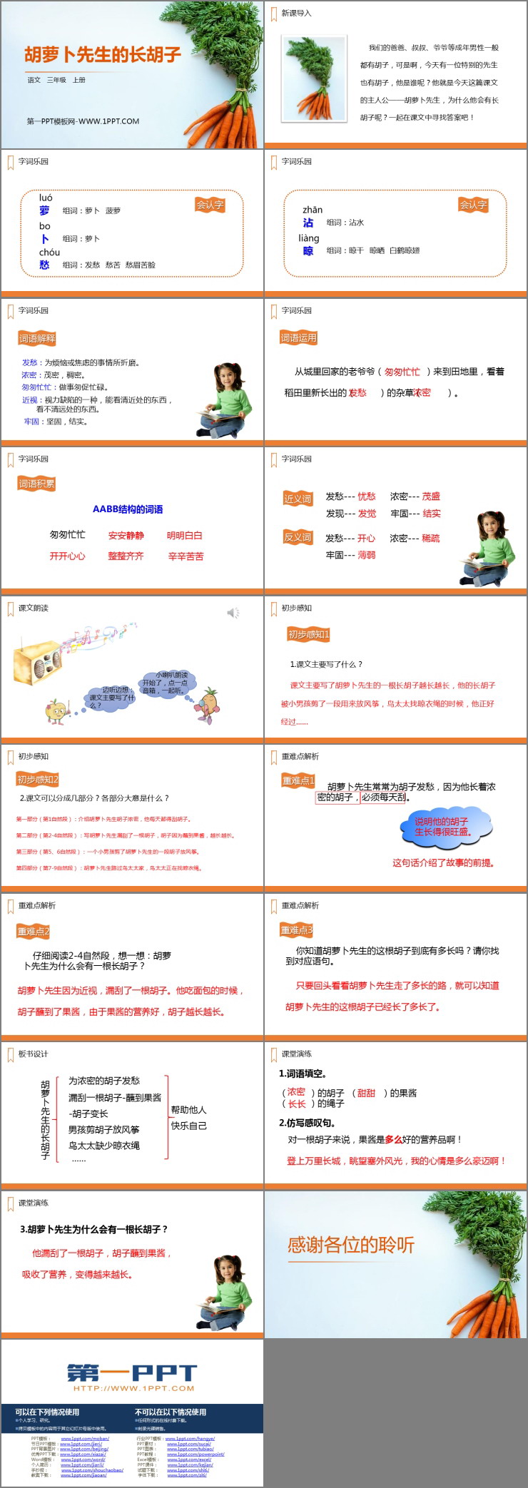 关键词:胡萝卜先生的长胡子PPT课件免费下载,胡萝卜先生的长胡子PPT下载,.PPT格式;