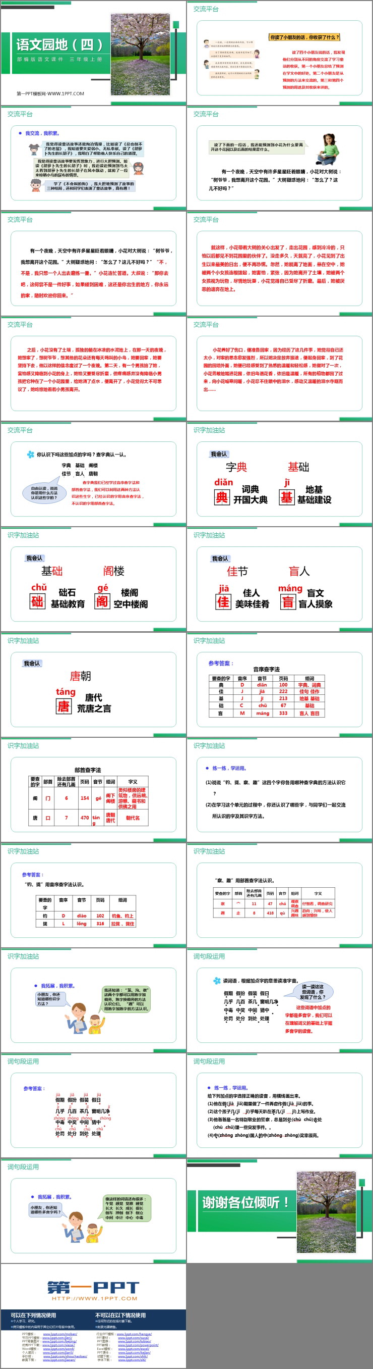 《语文园地四》PPT精品课件包含交流平台、识字加油站、词句段运用等内容。