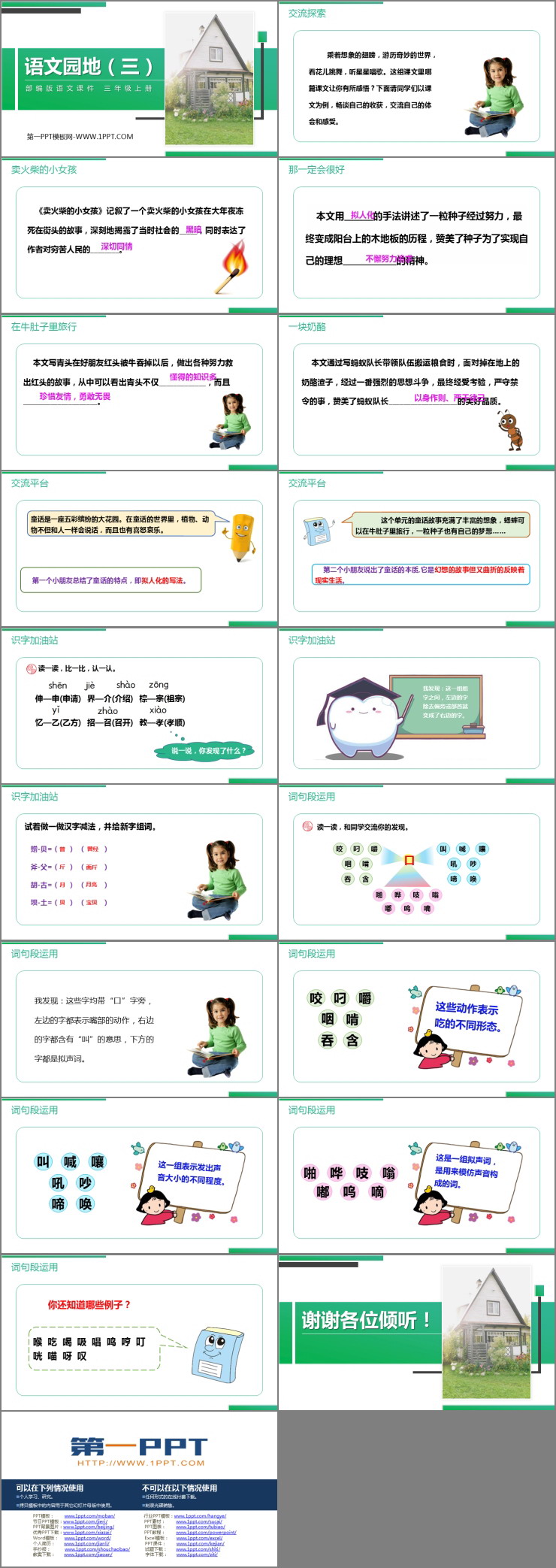 《语文园地三》PPT精品课件包含交流探索、交流平台、识字加油站、词句段运用等内容。