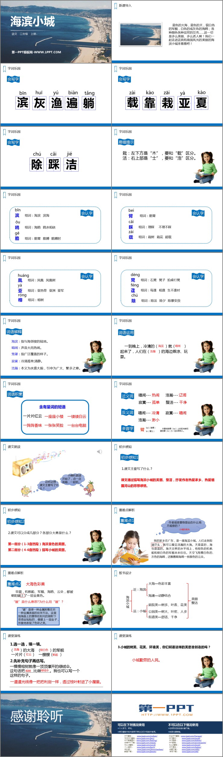 《海滨小城》PPT精品课件包含新课导入、字词乐园、初步感知、重难点解析、课堂演练等内容。