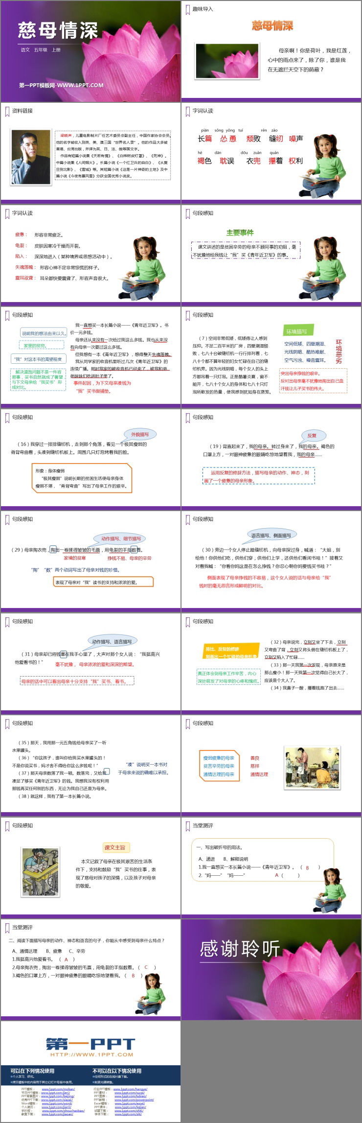 部编版语文五年级上册《慈母情深》PPT精品课件,共21页。