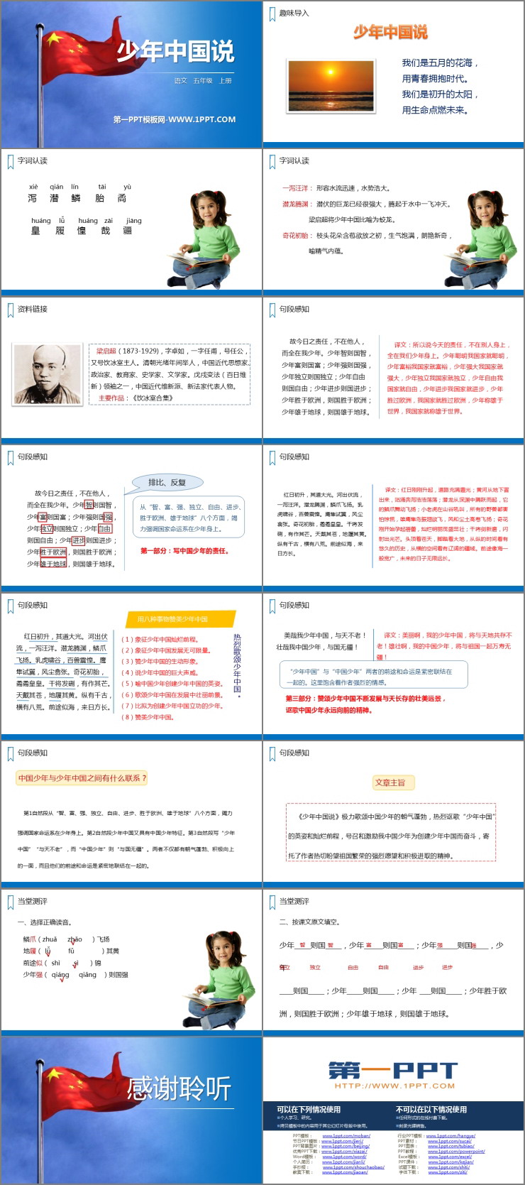 部编版语文五年级上册《少年中国说》PPT精品课件下载,共16页。
