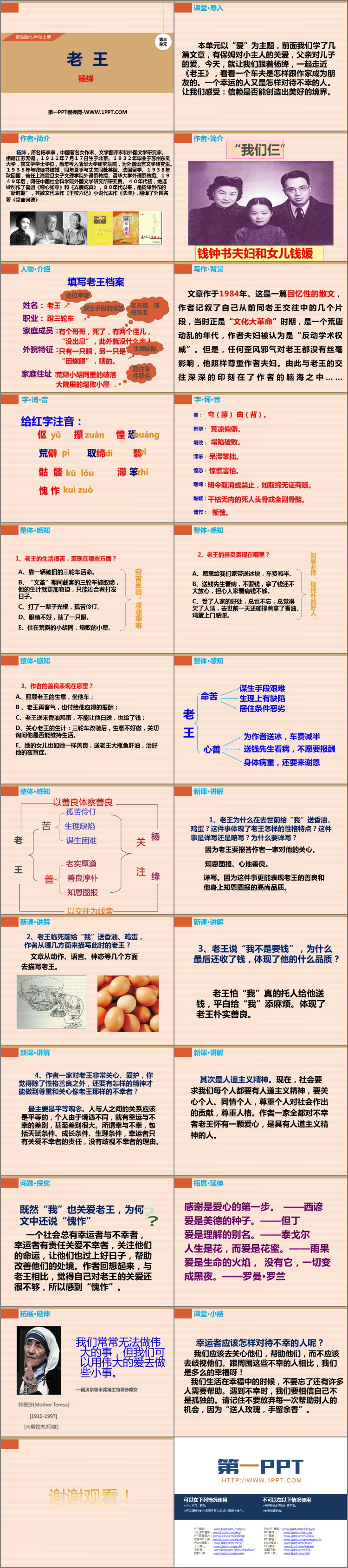 部编版七年级语文下册《老王》PPT优秀课件,共24页。