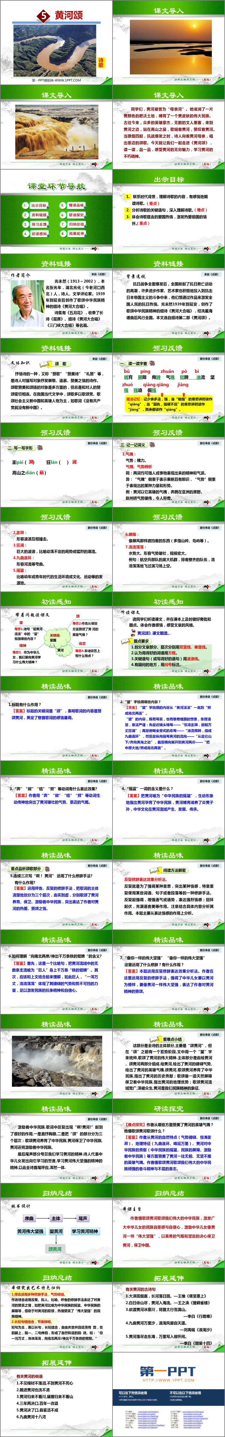 《黄河颂》PPT课件包含课文导入、资料链接、预习反馈、初读感知、精读品味、研读探究、归纳总结、拓展延伸等内容。