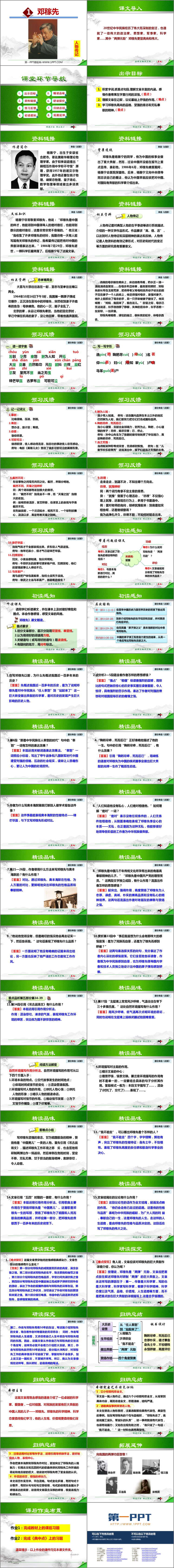 课件包含课文导入、资料链接、初读感知、精读品味、研读探究、归纳总结、拓展延伸等内容。
