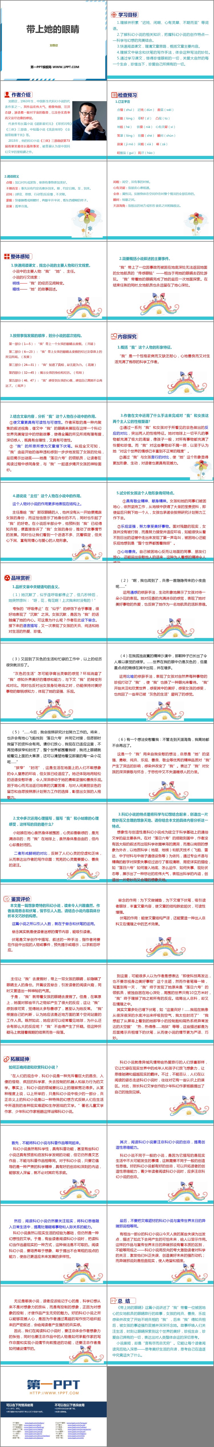 《带上她的眼睛》PPT课件包含学习目标、作者介绍、检查预习、整体感知、内容探究、品味赏析、鉴赏评价、拓展延伸、总结等内容。