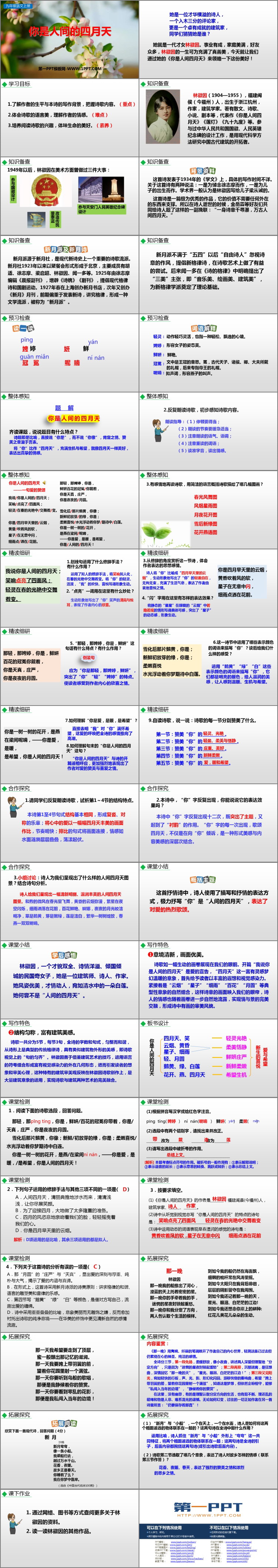 部编版九年级语文上册《你是人间的四月天》PPT优秀课件下载,共40页。