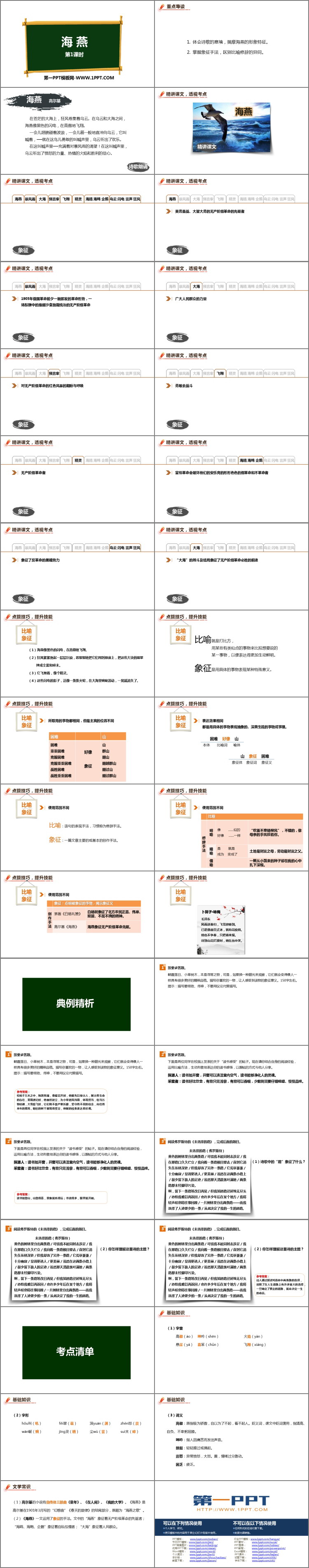 《海燕》PPT课件包含重点导读、精讲课文、点拨技巧、典例精析、考点清单等内容。