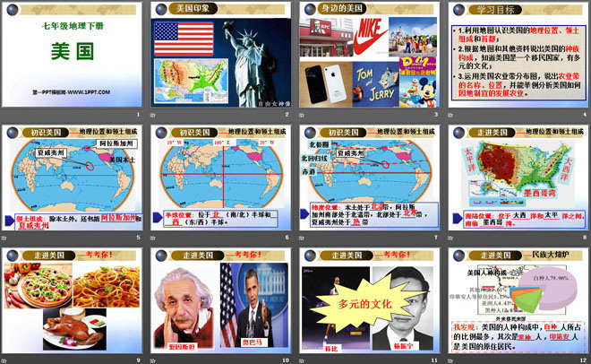 关键词:商务星球版七年级下册地理PPT课件免费下载,美国PPT下载,.PPT格式;