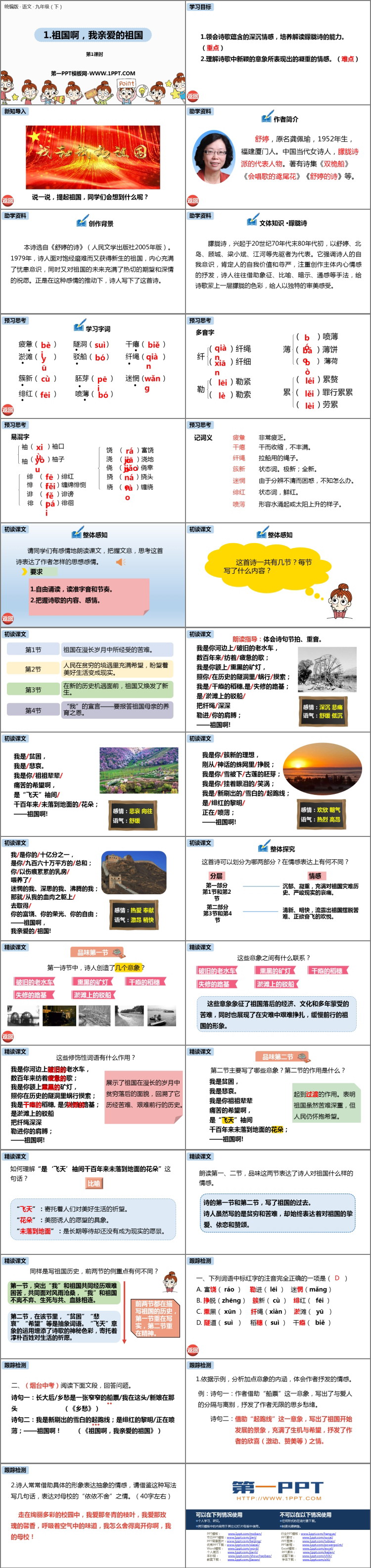 部编版九年级语文下册《祖国啊,我亲爱的祖国》PPT教学课件(第1课时),共30页。