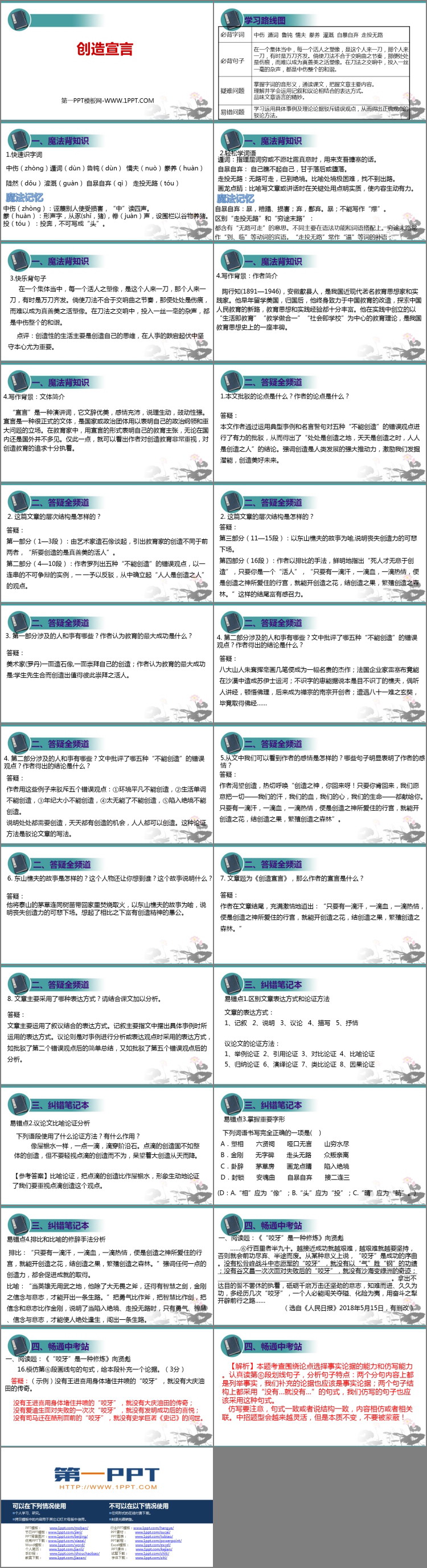 《创造宣言》PPT课件包含魔法背知识、答疑全频道、答疑全频道、畅通中考站等内容。