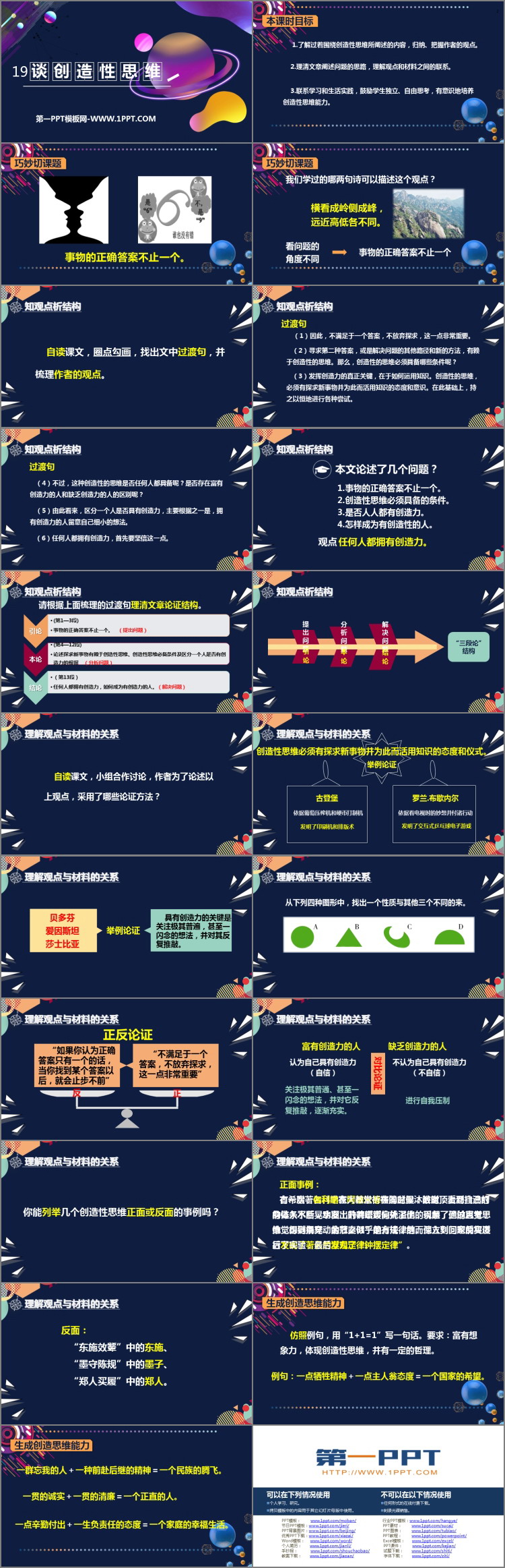 了解过着围绕创造性思维所阐述的内容,归纳、把握作者的观点。
