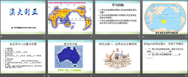 关键词:商务星球版七年级下册地理PPT课件免费下载,澳大利亚PPT下载,.PPT格式;