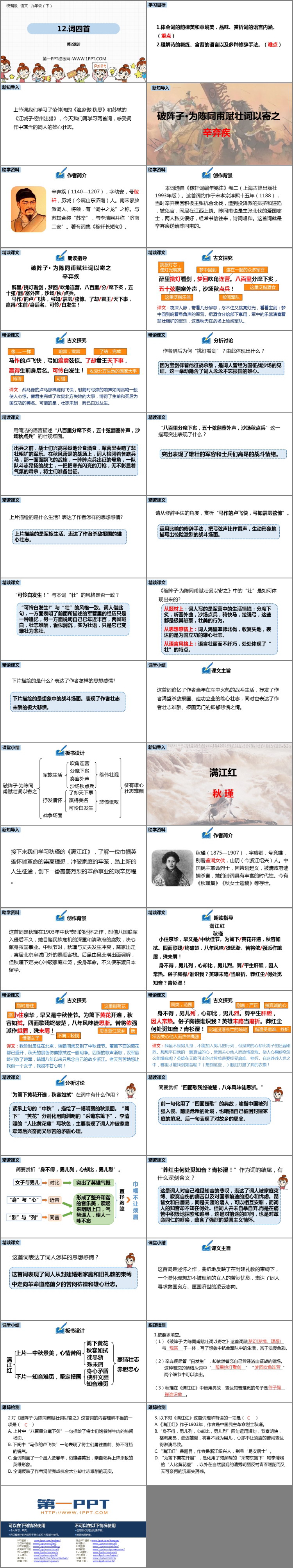 部编版九年级语文下册《词四首》PPT课件(第2课时),共37页。