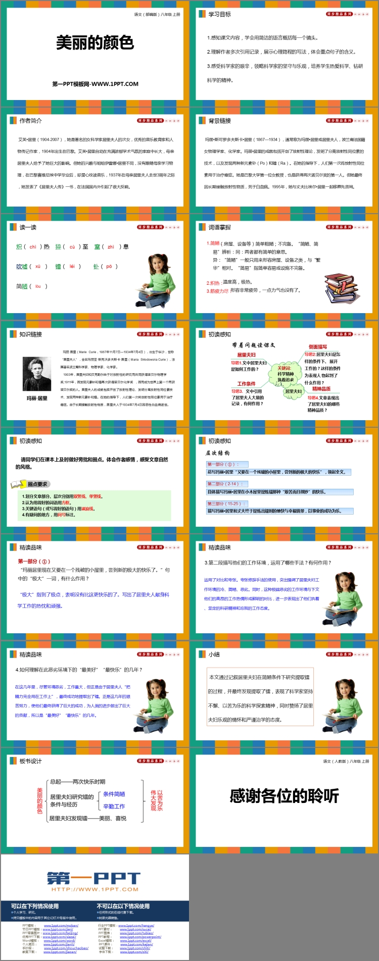 部编版八年级语文上册《美丽的颜色》PPT精品课件下载,共17页。
