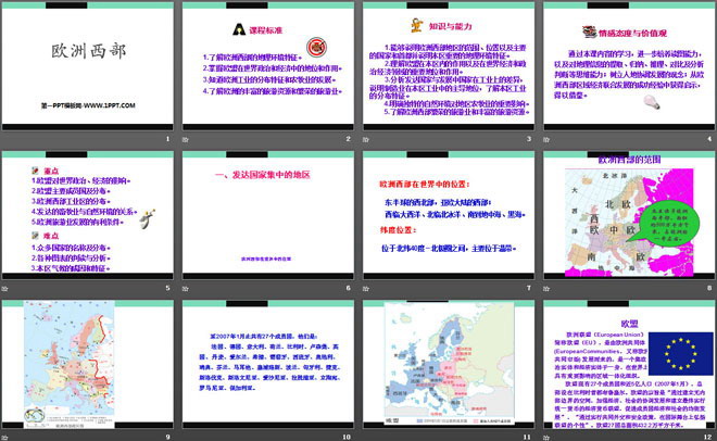 1.能够说明欧洲西部地区的范围、位置以及主要的国家和首都并说明本区重要的地理环境特征。