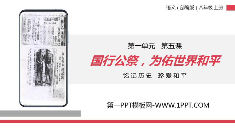 部编版八年级语文上册《国行公祭,为佑世界和平》PPT精品课件,共18页。