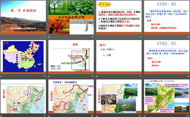 1. 能说出北方地区的位置、范围,主要的地形区、省级行政区域及其行政中心。