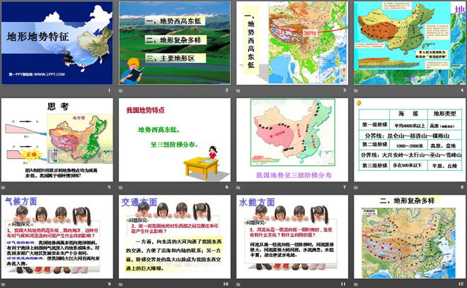 关键词:商务星球版八年级上册地理PPT课件免费下载,地形地势特征PPT下载,.PPT格式;