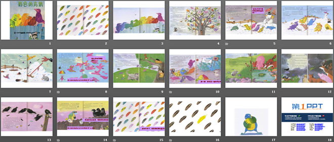 关键词:绘本故事PPT下载,儿童绘本故事幻灯片下载,彩色的乌鸦PPT下载,.PPT格式;
