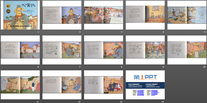 关键词:绘本故事PPT下载,儿童绘本故事幻灯片下载,大嘴狗PPT下载,.PPT格式;