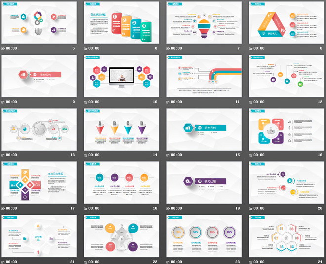 PPT模板内部的图表,同样使用了微立体风格设计,与幻灯片模板非常搭配统一;