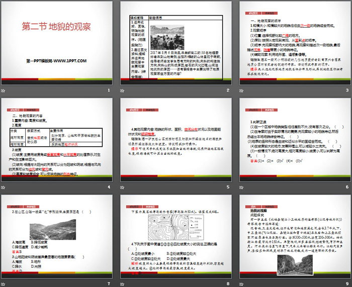 关键词:人教版高中地理必修一PPT课件免费下载,地貌的观察PPT下载,地貌PPT下载,.PPT格式;