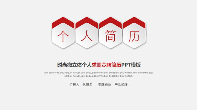 关键词:红色微立体PPT模板下载,精美个人简历PowerPoint模板下载,.PPTX格式;