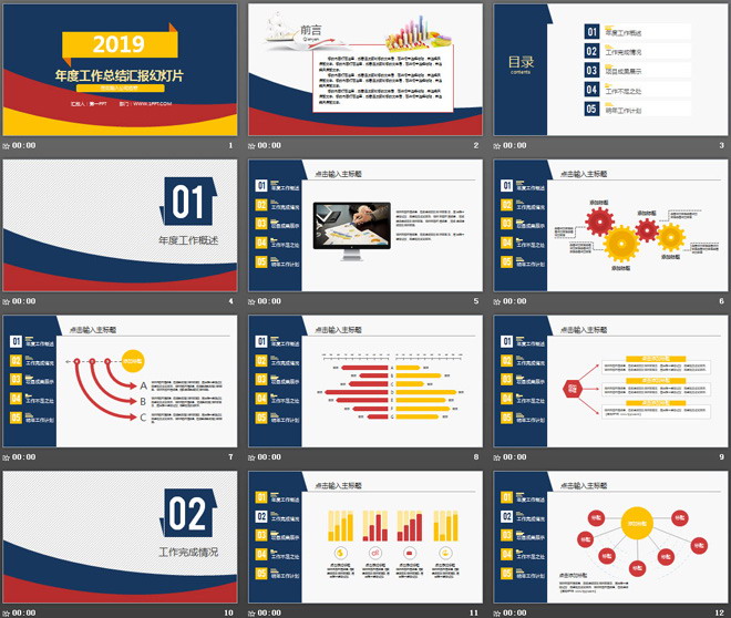 这是一套红黄蓝背景的工作总结工作汇报PPT模板,第一PPT模板网提供工作汇报幻灯片模板免费下载;