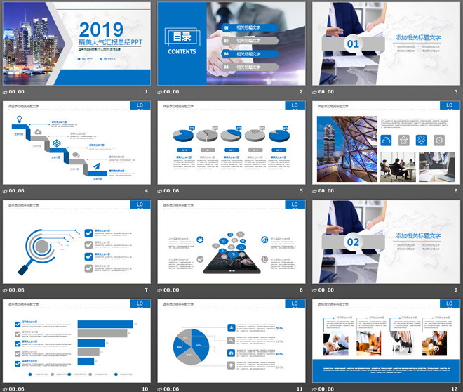 关键词:蓝色现代化城市PPT背景图片,扁平化工作汇报PowerPoint模板免费下载,.PPTX格式;