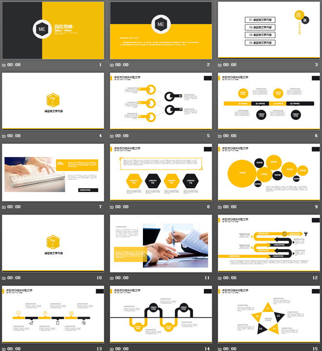 关键词:扁平化个人竞聘PowerPoint模板免费下载,动态黄黑搭配求职竞聘PPT模板,.PPTX格式;