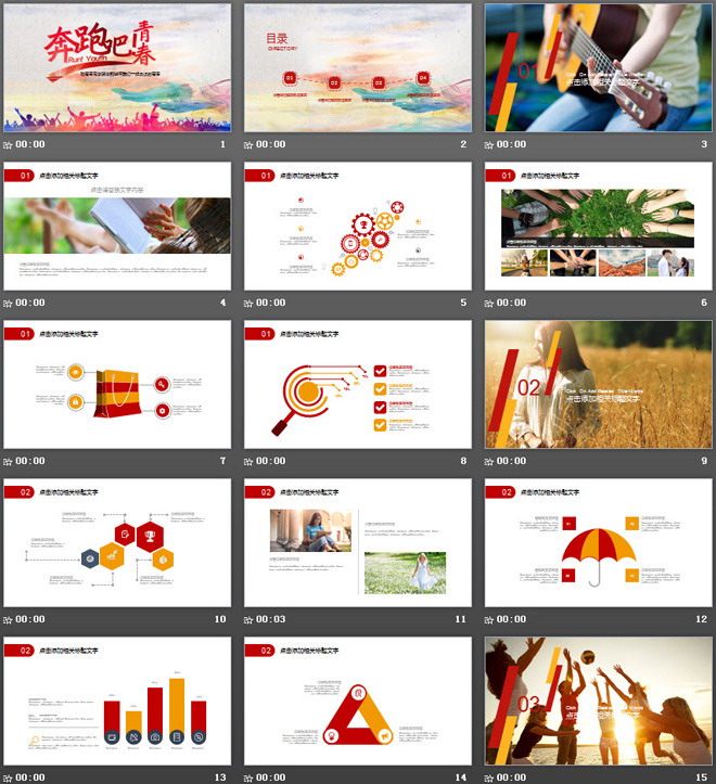 关键词:动态大学同学聚会PPT模板,致青春幻纪念册灯片模板,奔跑吧PowerPoint模板,.PPTX格式;