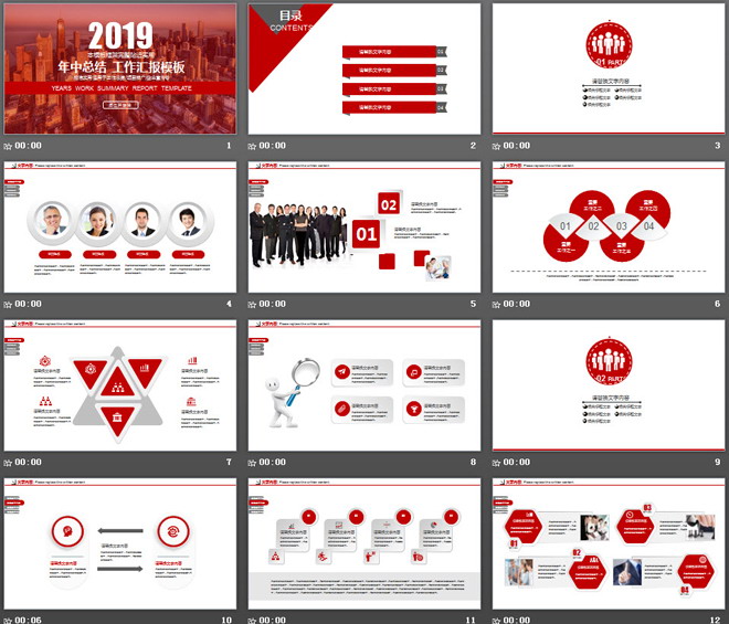 关键词:红色国外建筑幻灯片模板,年中工作总结PPT模板,工作汇报PowerPoint模板,.PPTX格式;