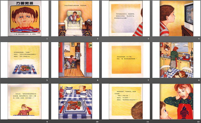 妈妈每天对他说:“再这样看下去,你的眼睛会变成方的喔!”