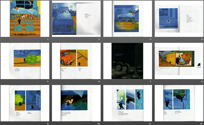 球球睡不着觉,他不喜欢黑黑的床底下,因为那里说不定有一只怪兽。这回还真的有一只怪兽,一只特别小的怪兽,小得都看不清。但是这只怪兽觉得他身体里有一个好大的洞,让他觉得好饿好饿。他咬了一口床底下的拖鞋,难吃死了。咬了一口玩具车,牙好痛,一会它发现了一个盒子。它从盒子的小洞看,里面一片黑暗。他把黑暗都吸了出来,吸的什么都不剩……