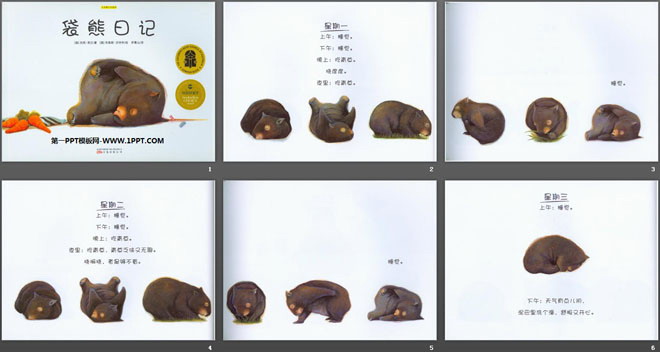 关键词:绘本故事PPT下载,儿童绘本故事幻灯片下载,袋熊日记PPT下载,.PPT格式;