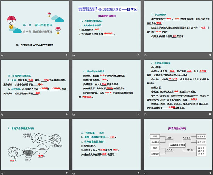 关键词:湘教版高中地理必修一PPT课件免费下载,地球的宇宙环境PPT下载,宇宙中的地球PPT下载,.PPT格式;