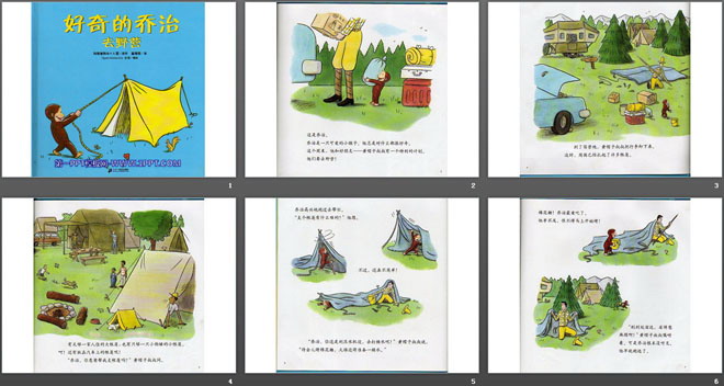 关键词:绘本故事PPT下载,儿童绘本故事幻灯片下载,好奇的乔治去野营PPT下载,.PPT格式;