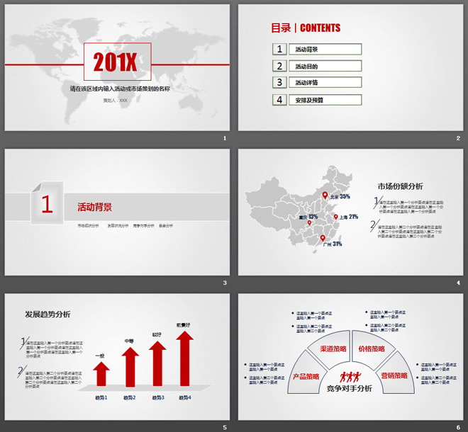 关键词:世界地图幻灯片背景图片,灰色扁平化PowerPoint图表,动态活动策划PPT下载,.PPTX格式;