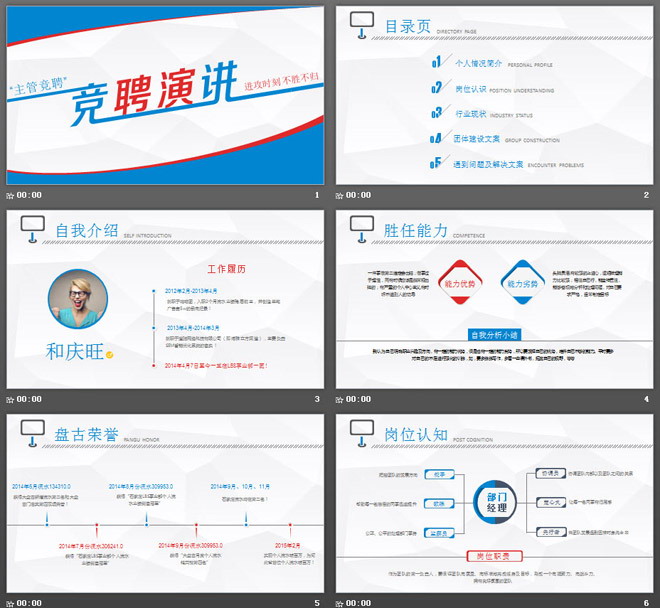 这是一套蓝红搭配的,个人岗位竞聘演讲PPT模板,共14张。第一PPT模板网提供精美个人竞聘幻灯片模板免费下载;