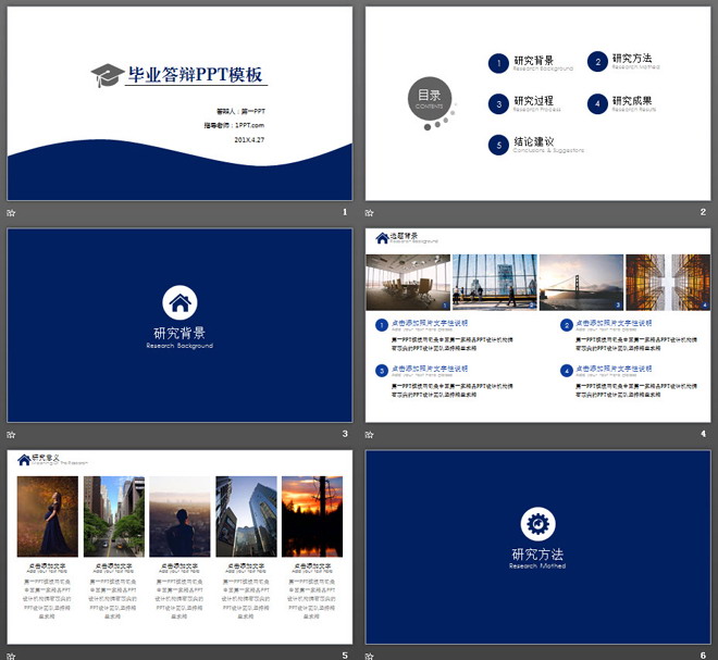 这是一套深蓝极简设计风格的,毕业论文答辩PPT模板,共27张。第一PPT模板网提供精美毕业答辩幻灯片模板免费下载;