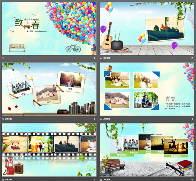 这是一套蓝天五彩气球背景的,“致青春”主题,20周年同学聚会PPT模板。共17张。第一PPT模板网提供精美同学聚会幻灯片模板免费下载;