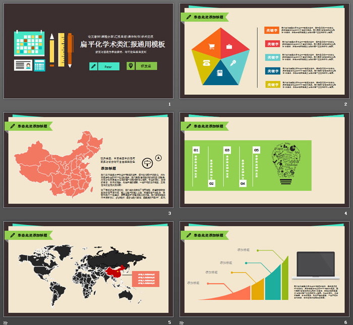 关键词:矢量绘制的尺子、铅笔、记事本幻灯片背景图片。彩色扁平化PowerPoint图表,动态学术报告PPT模板,.PPTX格式;