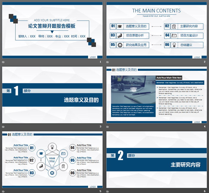 这是一套蓝色简洁风格的,论文答辩开题报告PPT模板,共19张。第一PPT模板网提供精美毕业论文开题报告幻灯片模板免费下载;